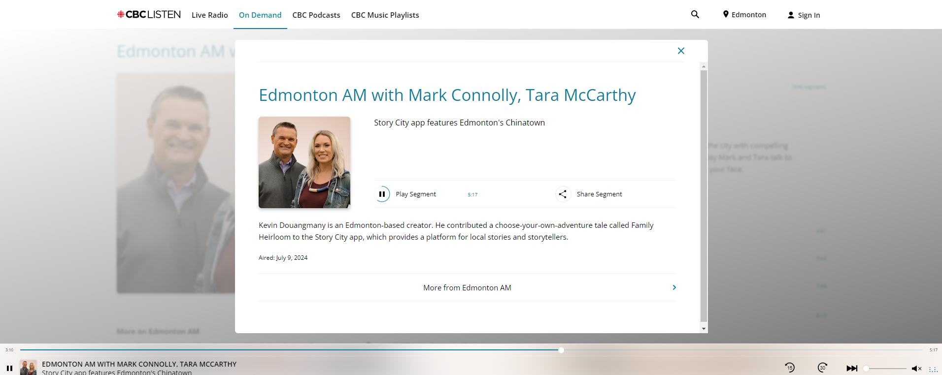 CBC Edmonton AM Profiles Story City Creator Kevin Douangmany“Family Heirloom” was profiled by CBC Edmonton at Edmonton AM radio with Mark Connolly, Tara McCarthy.